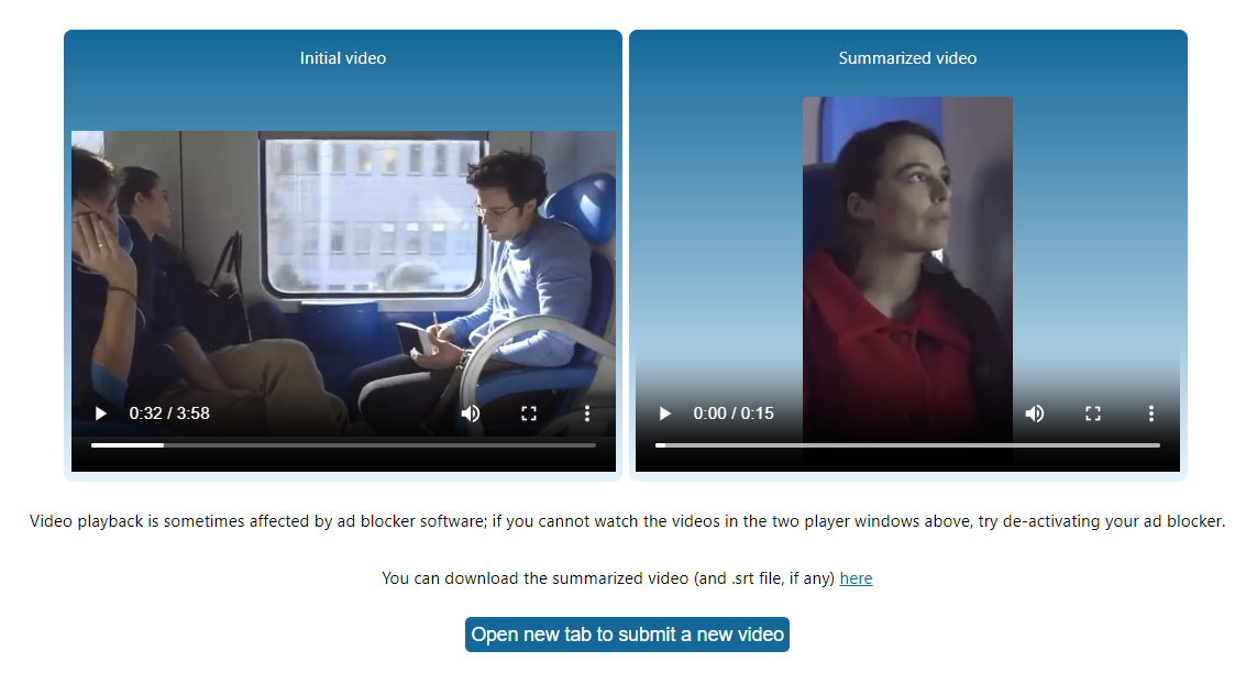 Note: The link remains active for 24 hours. After this period, the video, the summarization results and the email address (if provided) are automatically and permanently deleted from our servers.